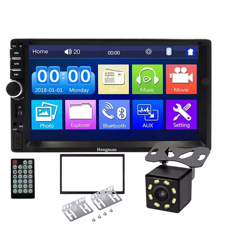 7018B Radio de Coche 2 Din de 7 Pulgadas HD con Conexión USB, Reproductor de Audio FM MP5, Cámara de Visión Trasera, Reproductor de DVD para Coche