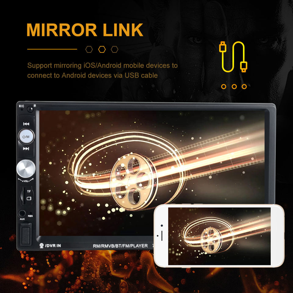 Estéreo, MANOS LIBRES, RGB, Control remoto, Enlace espejo, Micrófono incorporado, Pantalla dividida, Administrador de archivos, Coche de Control de volante, Altavoz incorporadoFunción