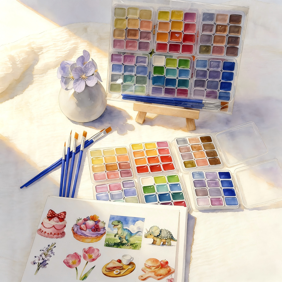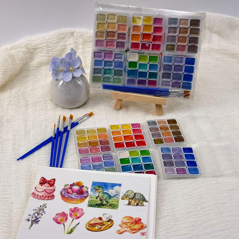 Set de Pintura de Acuarela Sólida de 72 Colores, 6 Cajas de 12 Colores con Pinceles y Delineador, Kit de Arte para Principiantes y Estudiantes para Pintura DIY