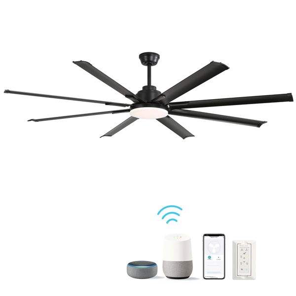 72-Inch Modern Large Design DC Motor Ceiling Fans with Smart Remote Control 6 Wind Speed for Living Room Black Color