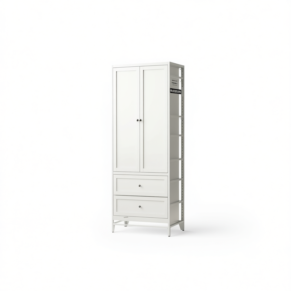 Armario de Almacenamiento de Cocina Independiente de Metal Blanco de 72 Pulgadas con 2 Cajones y Estantes Ajustables, Organizador Resistente para Especias Pequeñas