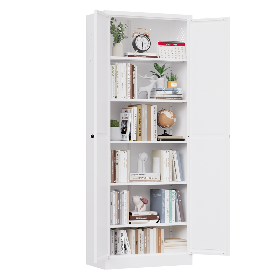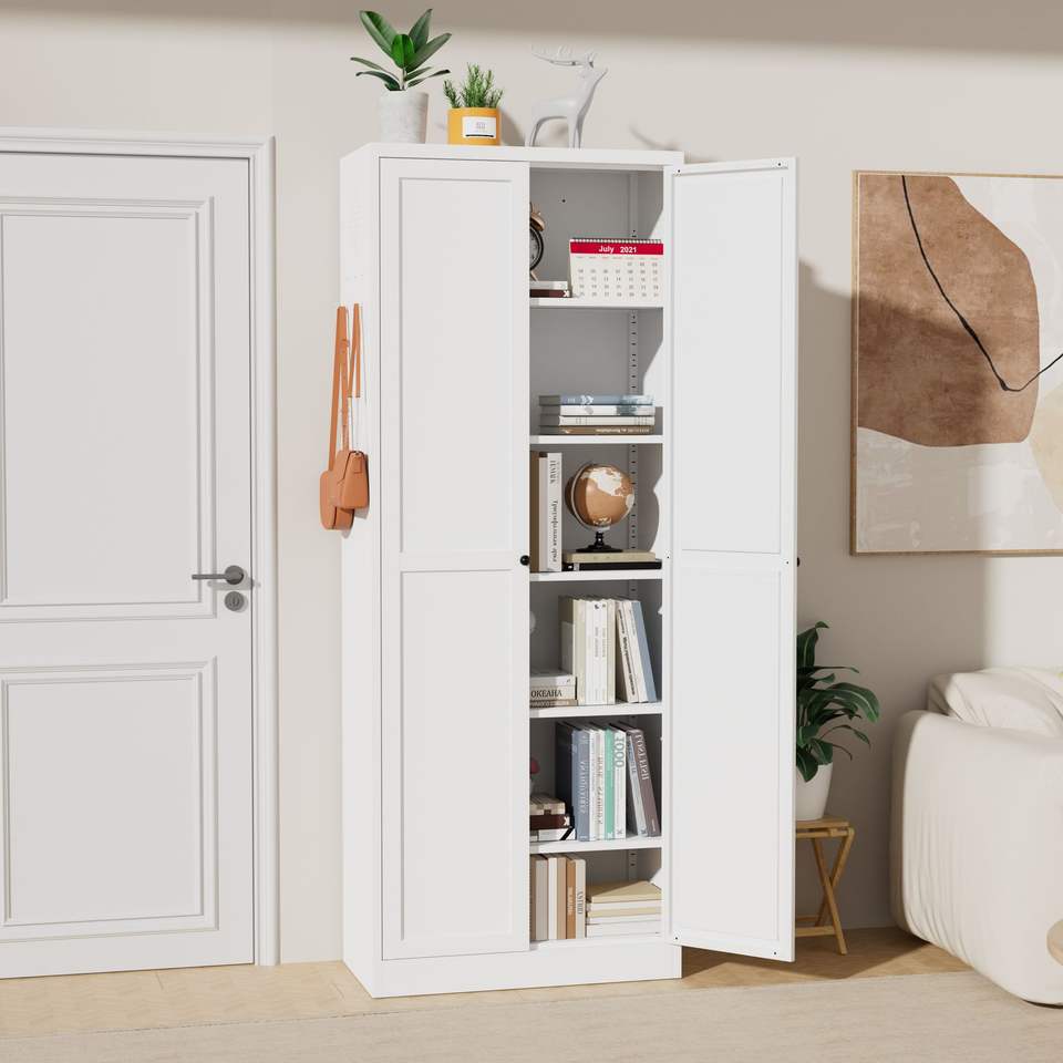 Organizador de Almacenamiento Independiente de Metal Blanco de 72 Pulgadas, Gabinete de Cocina Resistente, 5 Estantes Ajustables, Montaje sin Herramientas