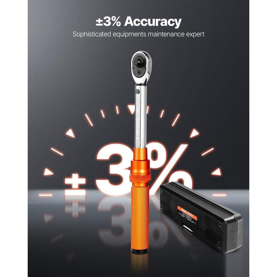 Juego de llaves dinamométricas de clic de alta precisión con 72 dientes y doble rango, 3% de precisión, accionamiento de 1/4 de pulgada, 20-200 lbf, doble dirección para herramientas de taller