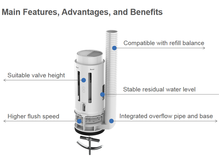Descripción:Válvula rasante dual para el Retrete de una sola pieza