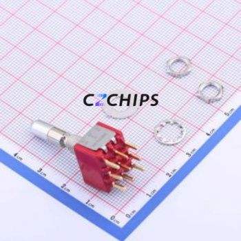 7303K12CBE Toggle Switch Through hole Component (THT) Switch 3-Pole Double Throw 20V 20V Cylindrical Knob