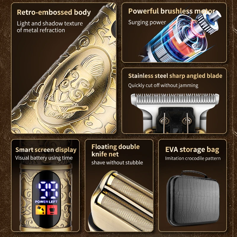 Función:De carga rápida, Pantalla LCD, Configuración de velocidad múltiple, Longitud Corte ajustable, Cuchillas resistentes al calor, Recortador de pelo de nariz