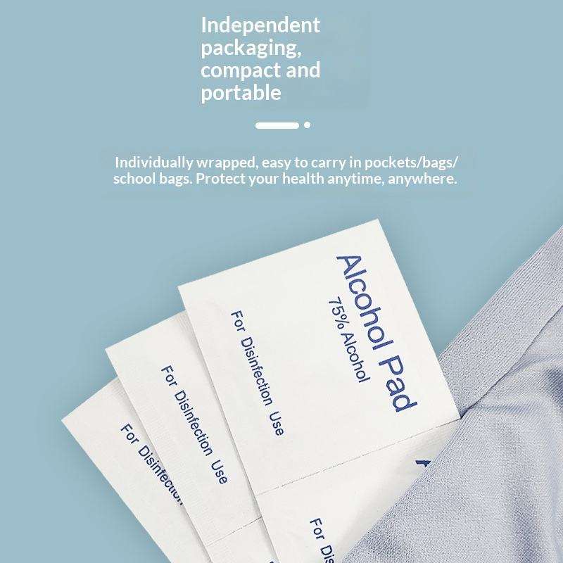 Toallitas Desinfectantes con 75% de Alcohol, 100 Unidades, Almohadillas de Algodón con Isopropanol para Cuidado de Heridas y Esterilización, Personalizables