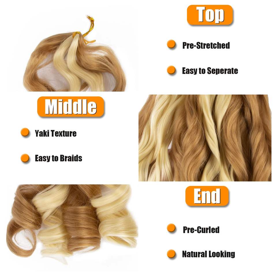 75 gramos 22 pulgadas Yaki seda caja ondulada trenzas sintético francés espiral rizo profundo extensión de cabello trenzado sintético de alta calidad
