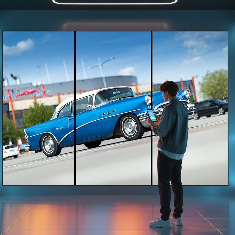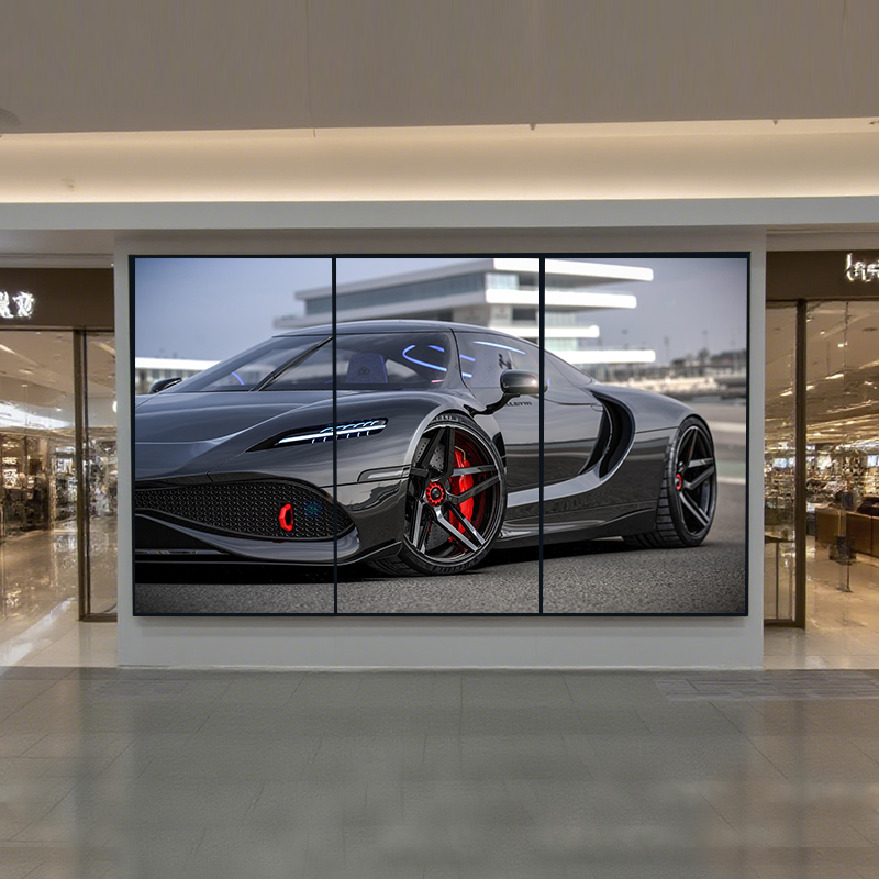 Pantalla LCD modular de 75 pulgadas, disposición 4*1 fija permanentemente para uso en tiendas minoristas, desfiles de moda transmitidos en vivo