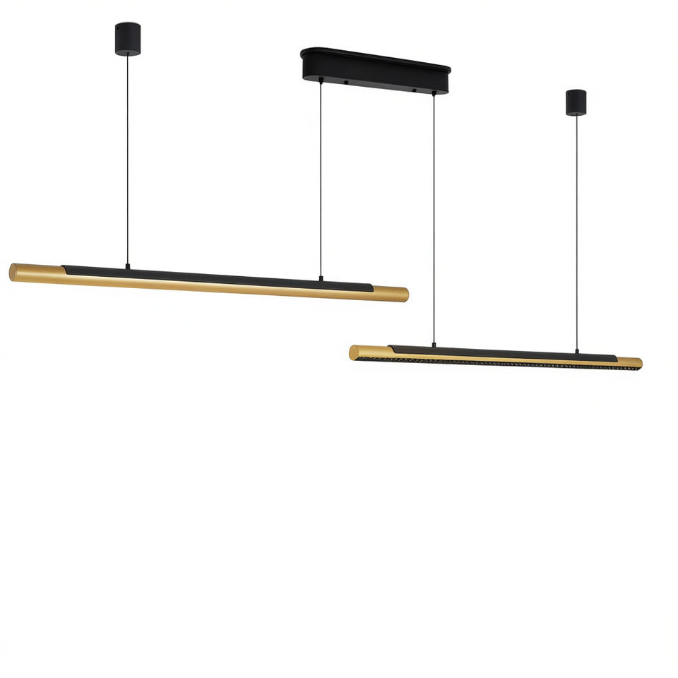 Lámpara Colgante LED Moderna de Hierro Negro y Dorado, Diseño de Doble Tubo de 75 Pulgadas, Ajustable para Comedor, Cocina, Sala de Estar