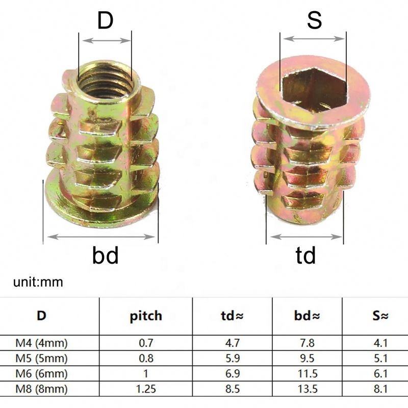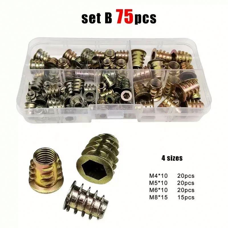 Juego de 75 Tuercas Roscadas E-nut M4 M5 M6 M8 para Muebles de Madera, Camas, Armarios, Mesas, con Cabeza Hexagonal Empotrada