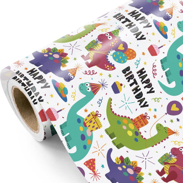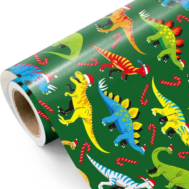 76,2 cm x 4,87 M venta al por mayor de alta calidad rollos de papel de regalo de embalaje de dinosaurio rollo de artesanía superior