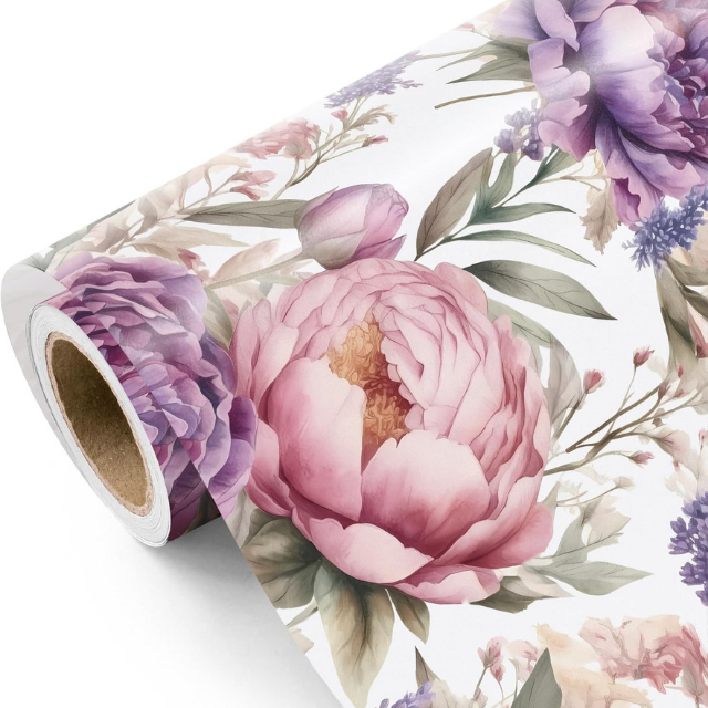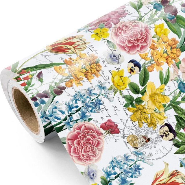 Rollo de papel de regalo recubierto de flores personalizadas de Navidad de 76,2 cm x 4,87 m al por mayor para embalaje Vintage reciclable e impermeable