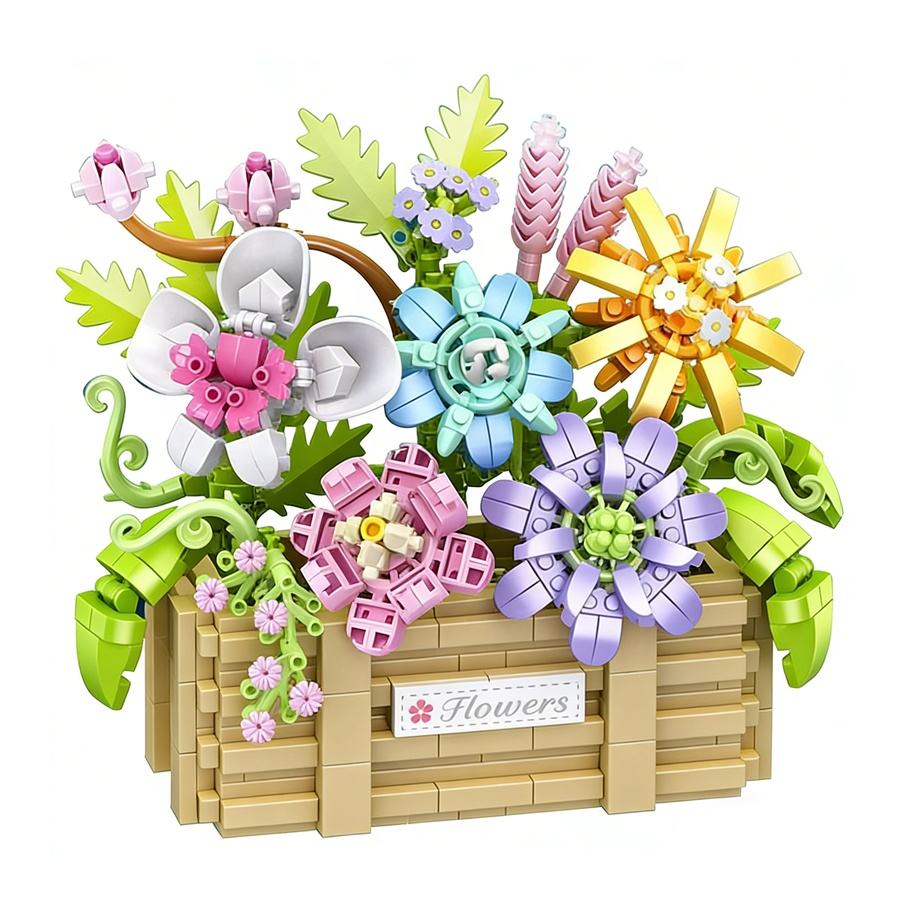 Ventaja: juego de bloques de cesta de flores:Sin riego, nunca se marchita, no se desvanece, alegría infinita.
