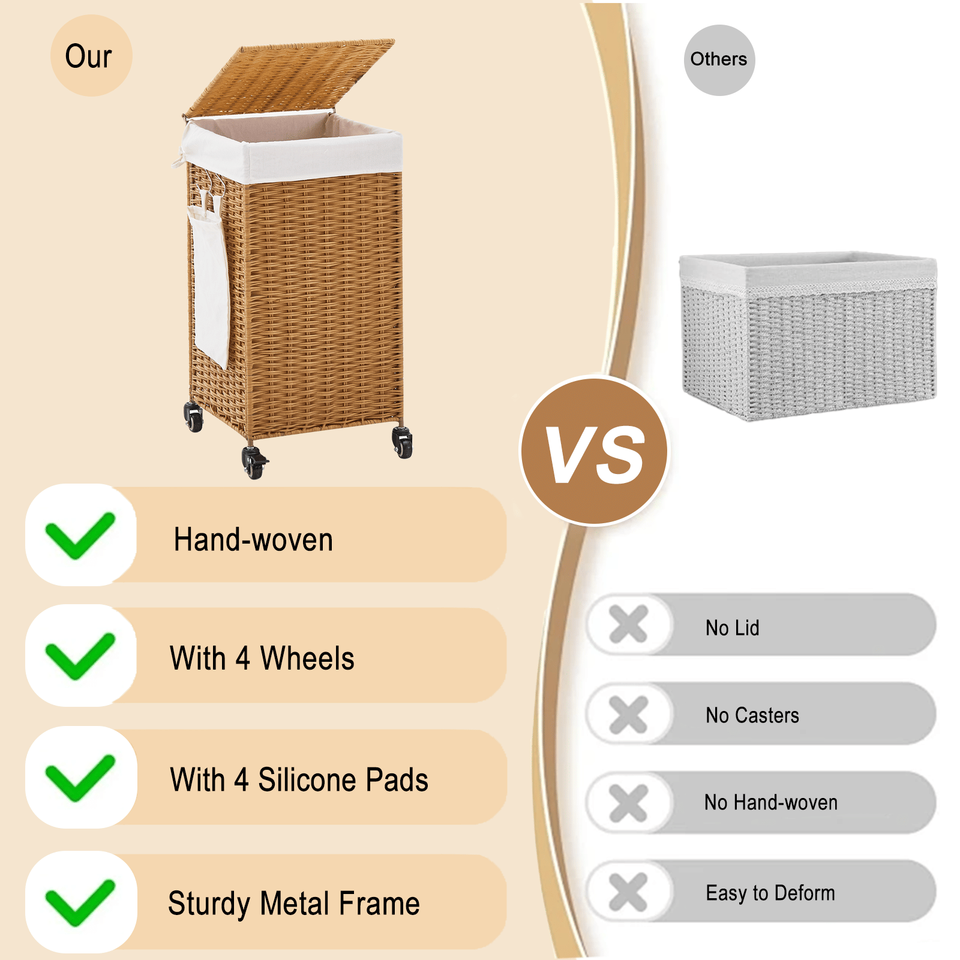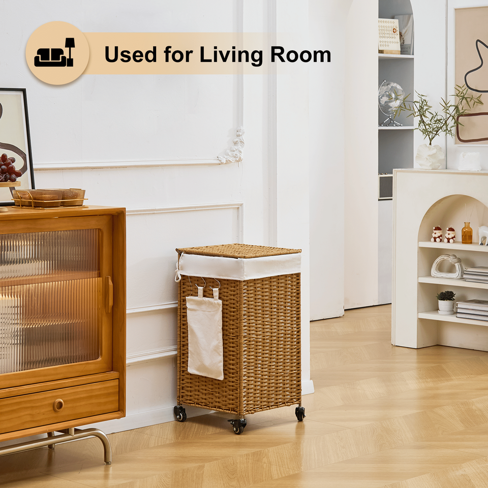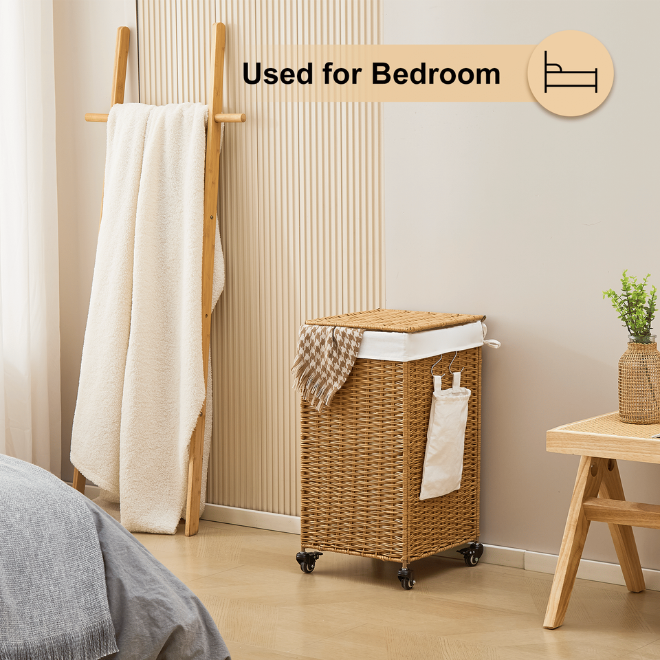 Cesto de Ropa Sucia con Ruedas y Tapa, de Mimbre Tejido, 78L