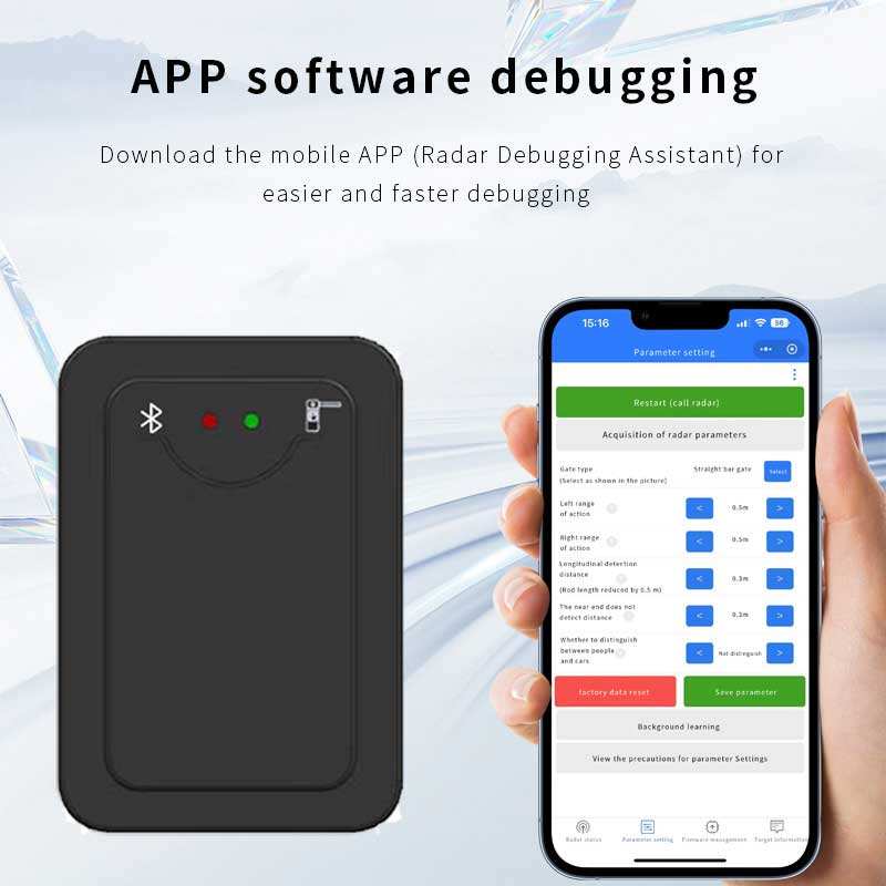 Nombre del producto:Radar de estacionamiento IP67, alcance de 1 a 6 metros, con comisionamiento Bluetooth.