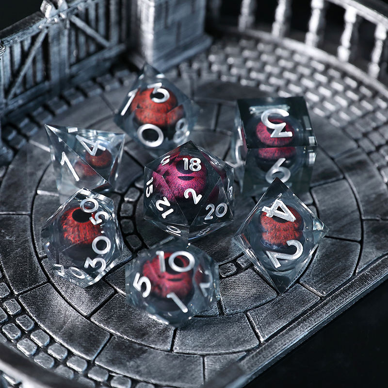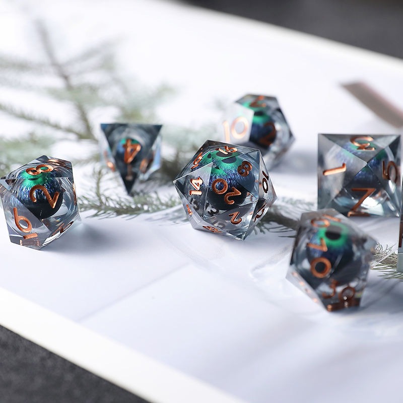 7PCS DND D20 Liquid Core Dragon's Eye Dice Sets para COC Dungeon y Dragon Pathfinder RPG Juegos de rol Party