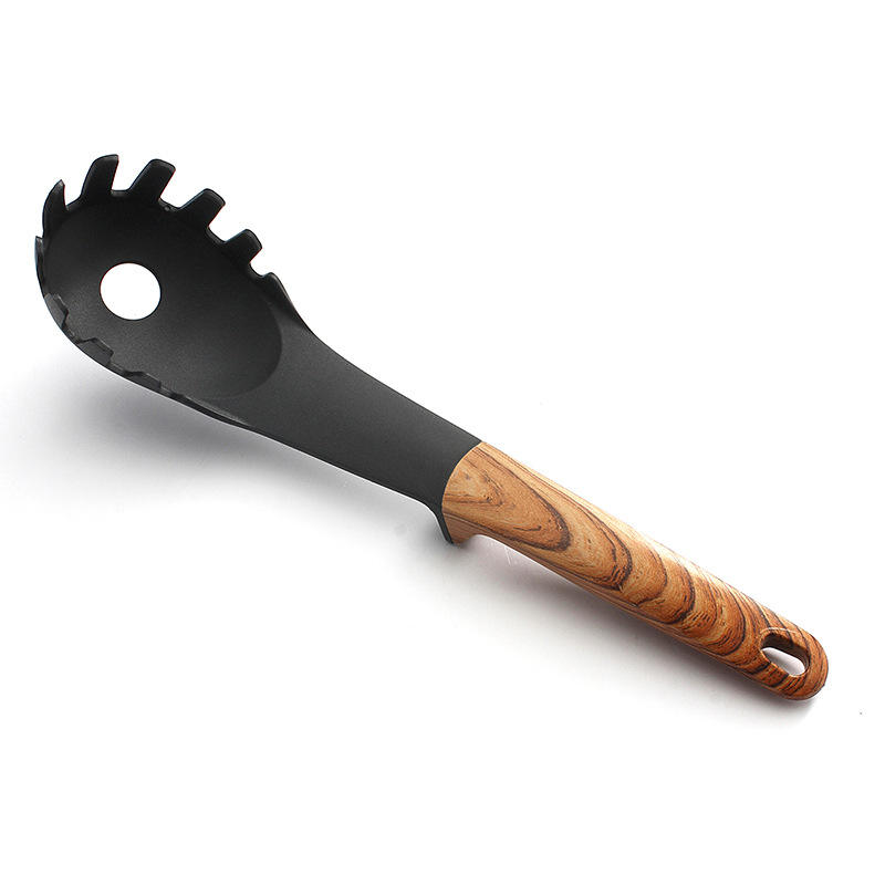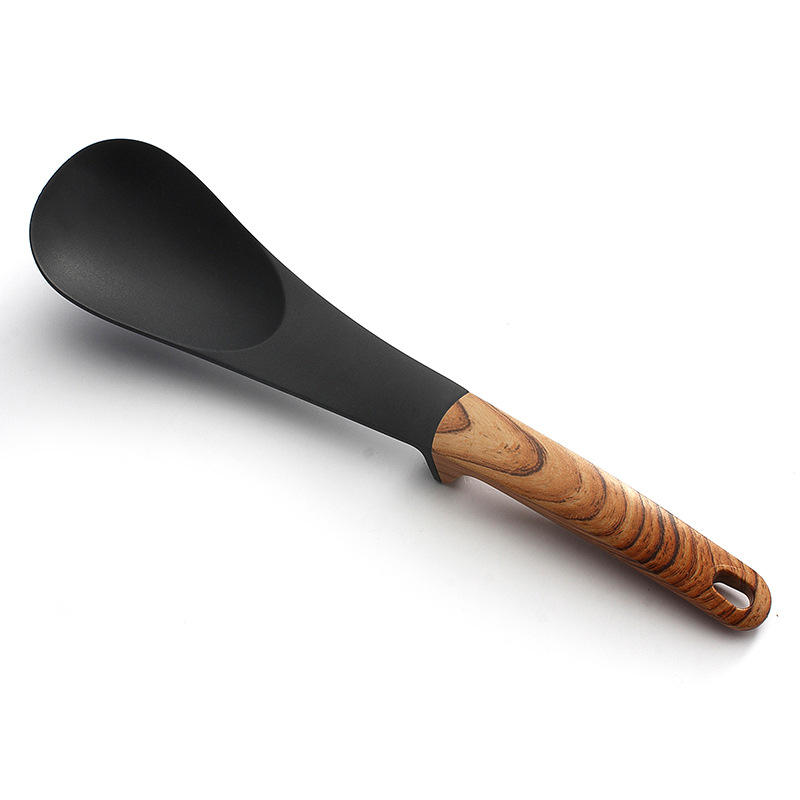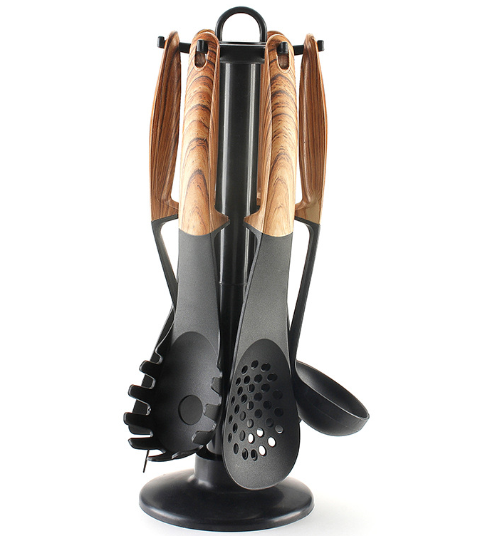 Juego de 7 utensilios de cocina: cuchara para sopa, cuchara para espaguetis, espátula, espátula ranurada, cucharón con soporte de almacenamiento