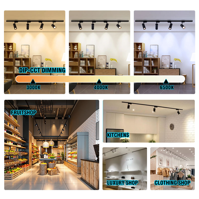 Luz de Riel LED COB de 7W-30W, DIP-CCT Seleccionable, CRI90, Controlador No Aislado, Estándares de la UE (CE EMC RoHS), 2 Años de Garantía