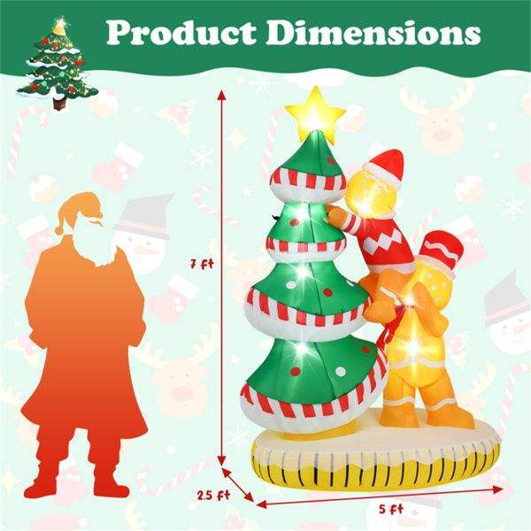 Árbol de Navidad Inflable de 2.1 m (7 pies) con Hombres de Jengibre, Resistente al Agua IP44, Inflado Rápido, Decoración Navideña para Jardín con 7 Luces LED