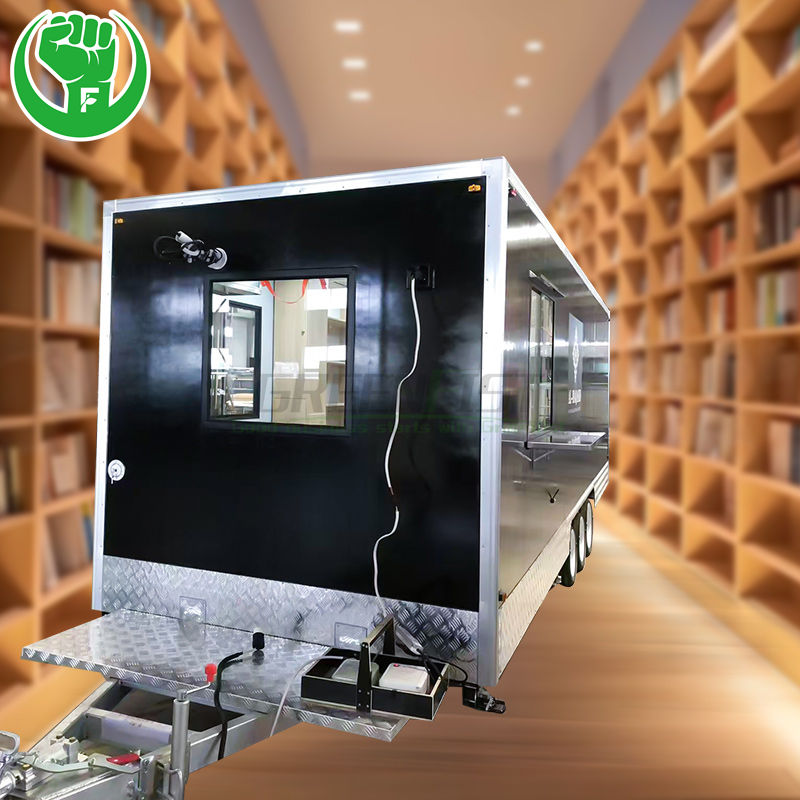 Remolque de Biblioteca Personalizado de Acero Inoxidable de 7m con Diseño de 4 Ruedas para Puesto de Noticias, Quiosco de Libros, Carrito Móvil de Dulces y Papas Fritas