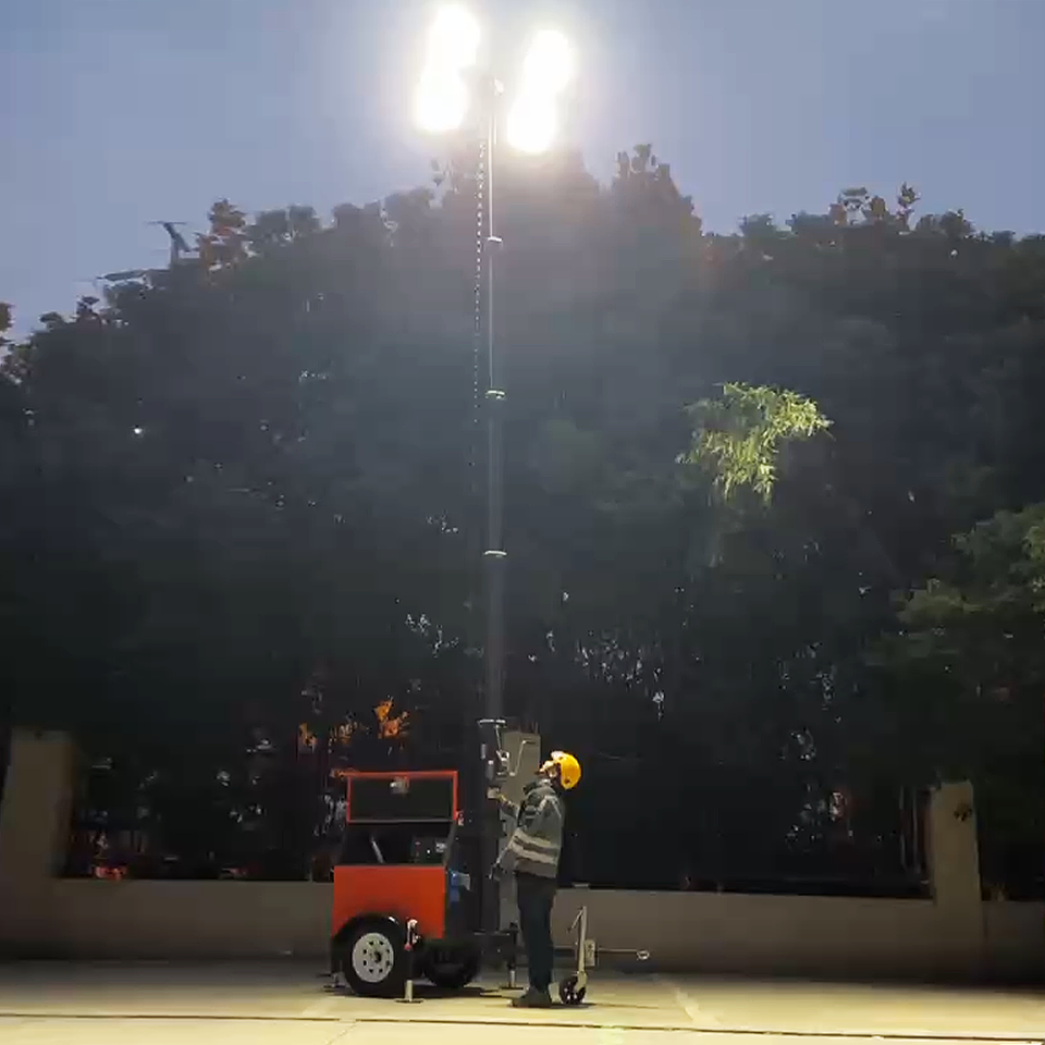 Generador de torre de luz de remolque de 7m Torre de luz de remolque de 7m Torre de iluminación móvil de generador diésel tipo remolque de 7m