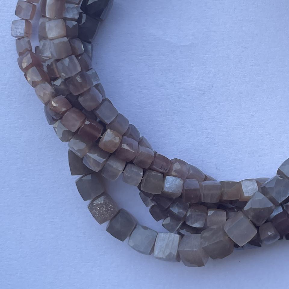 Product Name:Natural Chocolate Moonstone Faceted Box Cube Gemstone Beads Strand