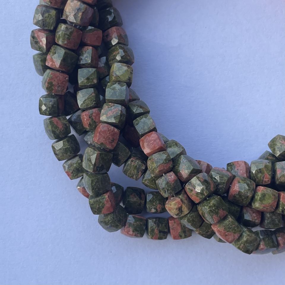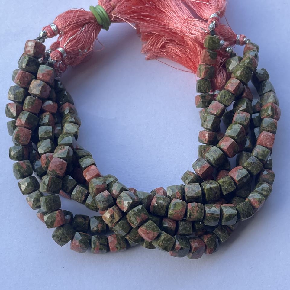 Nombre del producto:Natural Unakite Faceted Cube Box Gemstone Beads Strand