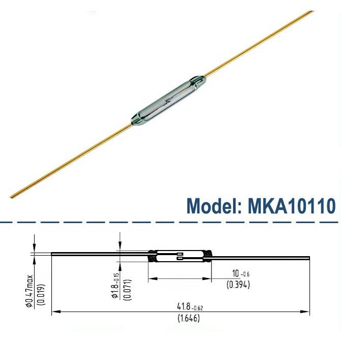 Interruptor Electromagnético de Láminas RMCIP MKA50202 AT15-20 de 7mm, Montaje por Soldadura, Normalmente Abierto, con Cubierta de Vidrio para Contactos de Relé