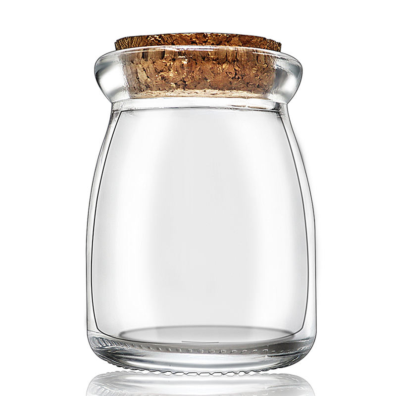 Pequeños tarros de 7oz Glas S con las tapas del corcho, envase del yogur con las tapas del PE