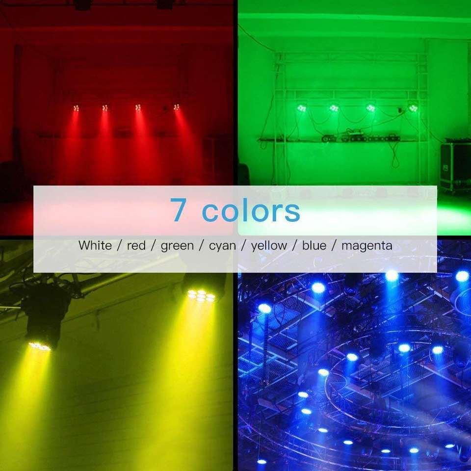 Juego de 7 cabezas móviles full color, control por sonido, DMX512, luz de escenario giratoria LED tipo PAR de lavado