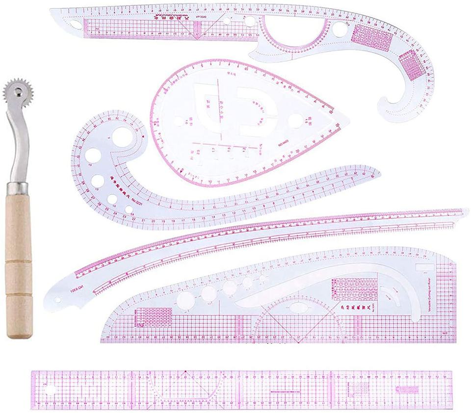 Juego de 7 Reglas de Costura, Regla Métrica de Plástico, Herramientas de Costura, Regla de Medición con Forma Curva, Juego de Reglas de Moda