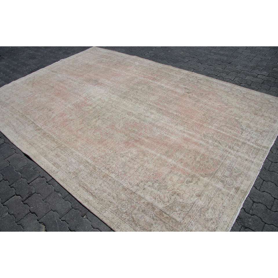 Alfombra Vintage de 7x10.3 pies, Alfombra Persa Turca Gris de Lana