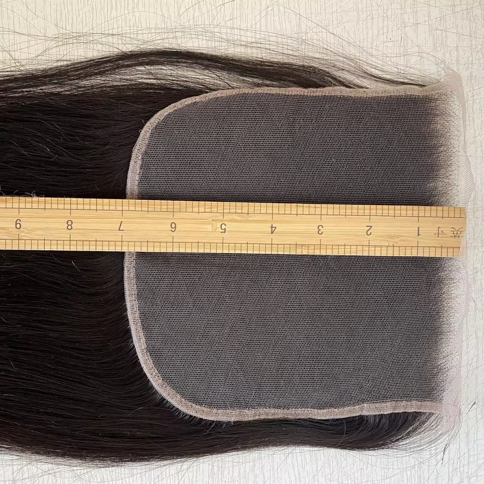 Cierre 7x7 de Cabello Humano Remy Indio para Encaje Transparente, Densidad 180%, Sin Pegamento, Nudos Decolorados, para Mujeres Negras