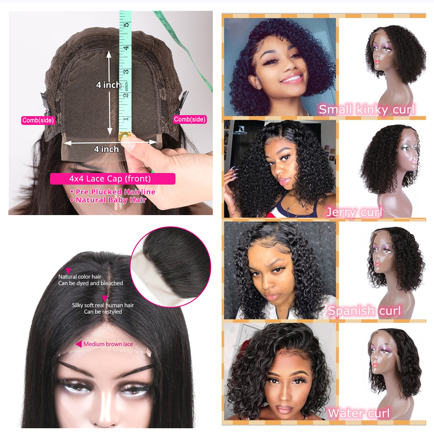 8 "10" 12 "14" 16 "pulgadas peruano cutícula alineada cabello humano parte media HD encaje frontal corto Bob peluca para mujeres negras