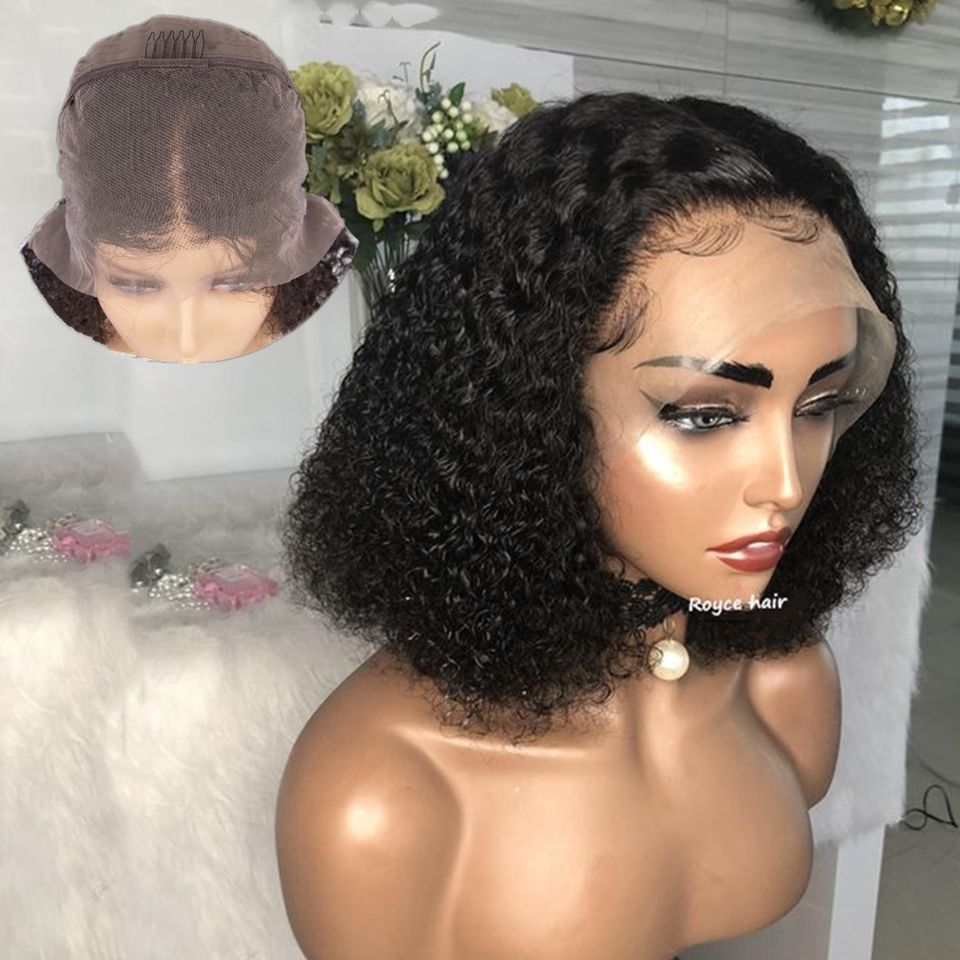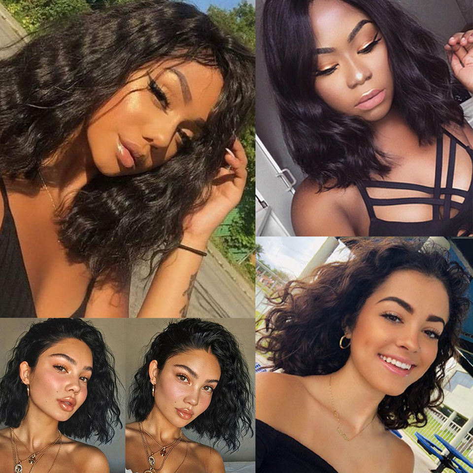 8 "10" 12 "14" 16 "pulgadas 100% cutícula alineada cabello humano peruano HD encaje frontal corto parte media Bob peluca para mujeres negras