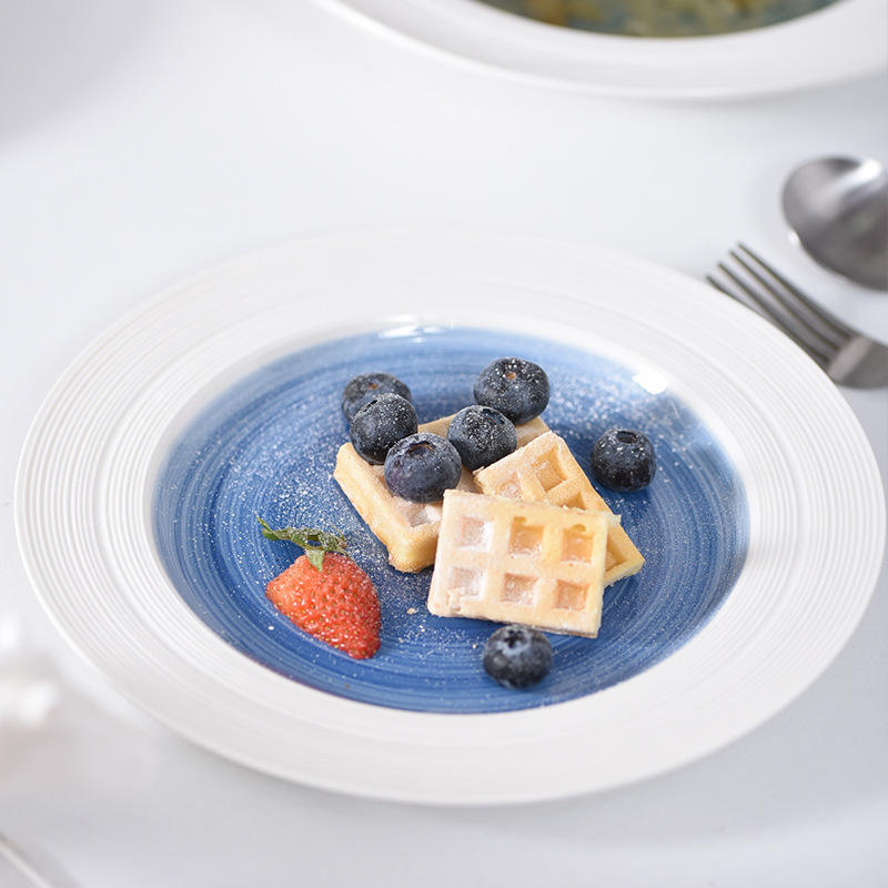 Plato plano de porcelana ecológico de 8/10 pulgadas para Hotel, restaurante, Pasta occidental y bistec, plato de cerámica cepillado elegante