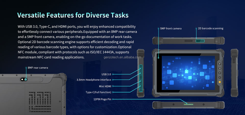 Tableta industrial reforzada N100 de 8/10 pulgadas Windows 10/11 con escáner de código de barras Tablet PC resistente de 1000 NITS Tablet resistente