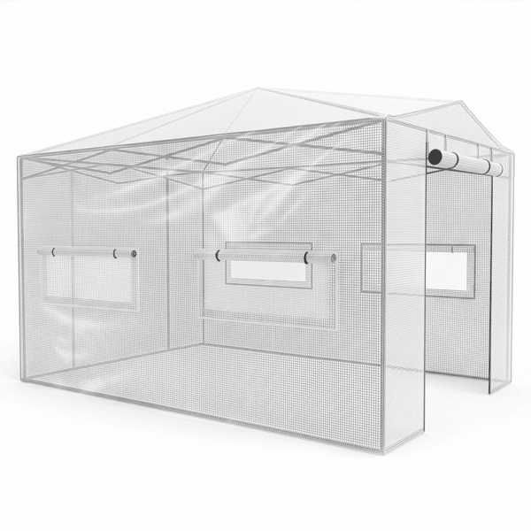Invernadero Plegable de Plástico con Estructura de Hierro Pulverizado y Malla de PE, 8x12 pies, Blanco, para Jardín