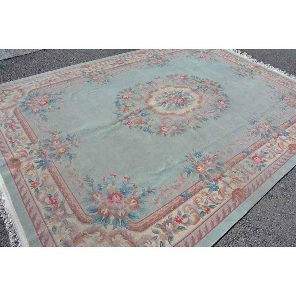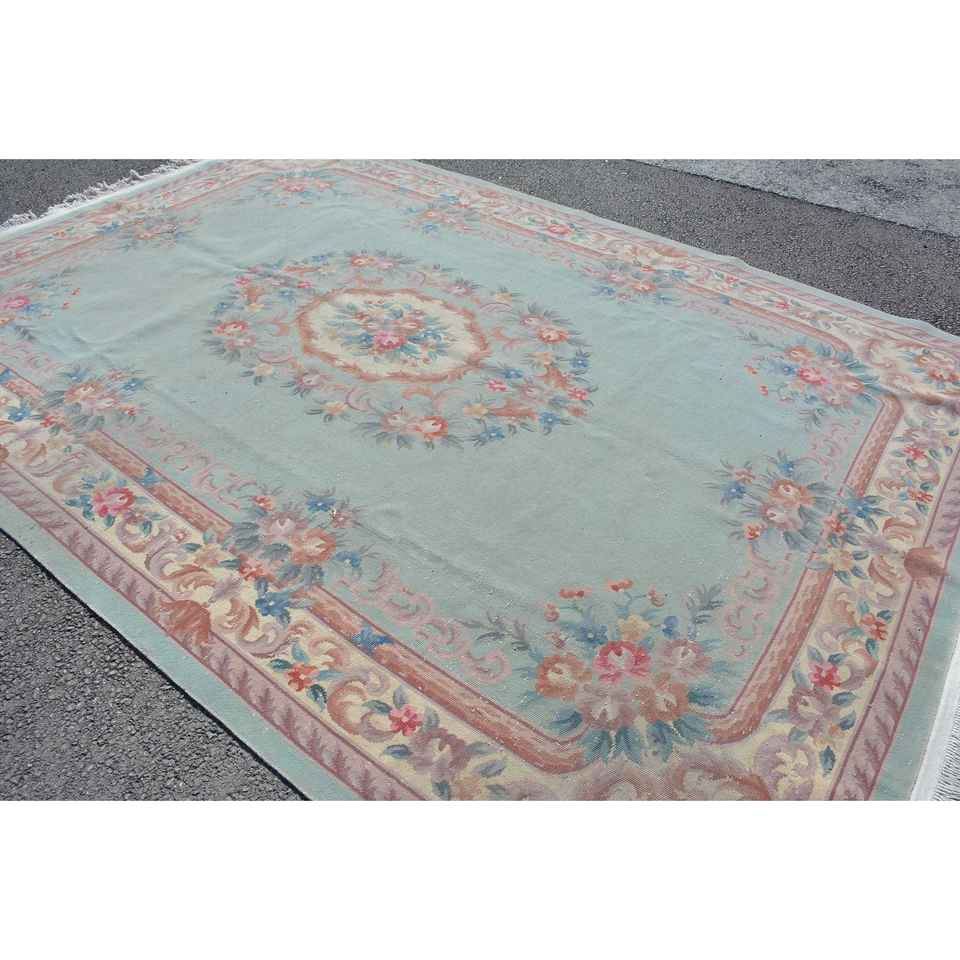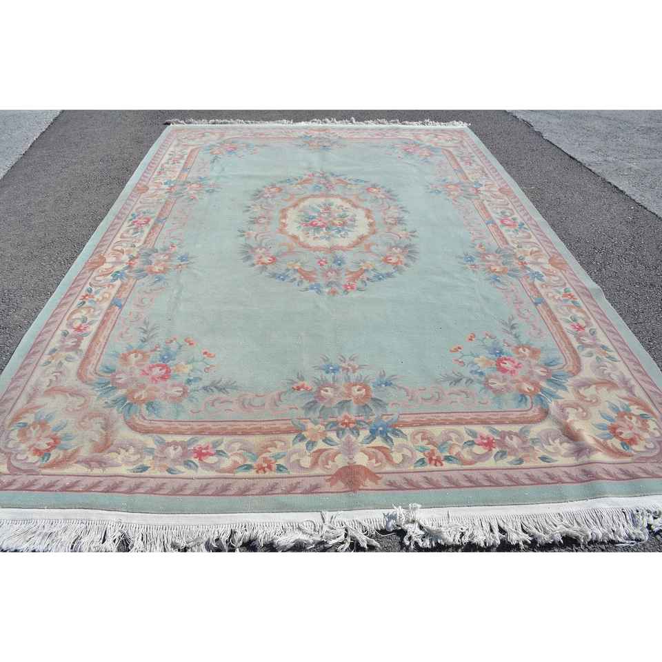 Alfombra Turca de 8.1x11.5 pies, Alfombra Vintage Extra Grande, Alfombra a Cuadros Azul y Rosa
