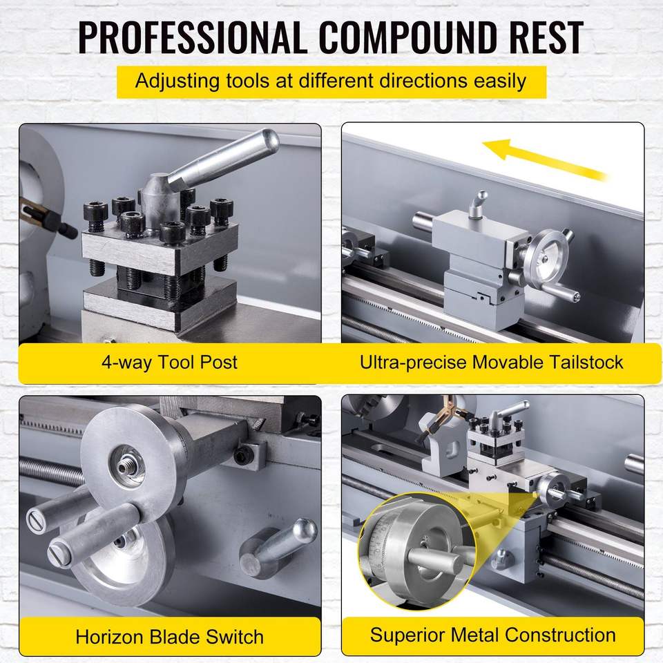 Mini máquina de torno de Metal de 8,3x31,5 pulgadas, 2500 RPM, velocidad Variable, 850W, Motor sin escobillas, precisión, Mini torno, herramienta de torneado