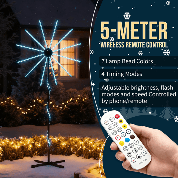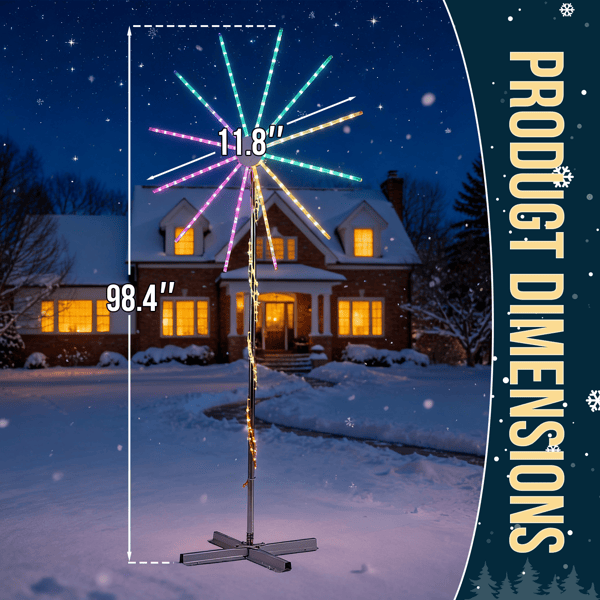 Luces LED RGB de Fuegos Artificiales de 8.3 Pies con Soporte, 180 Luces, Decoraciones Navideñas, Control por Aplicación, Exhibición Festiva