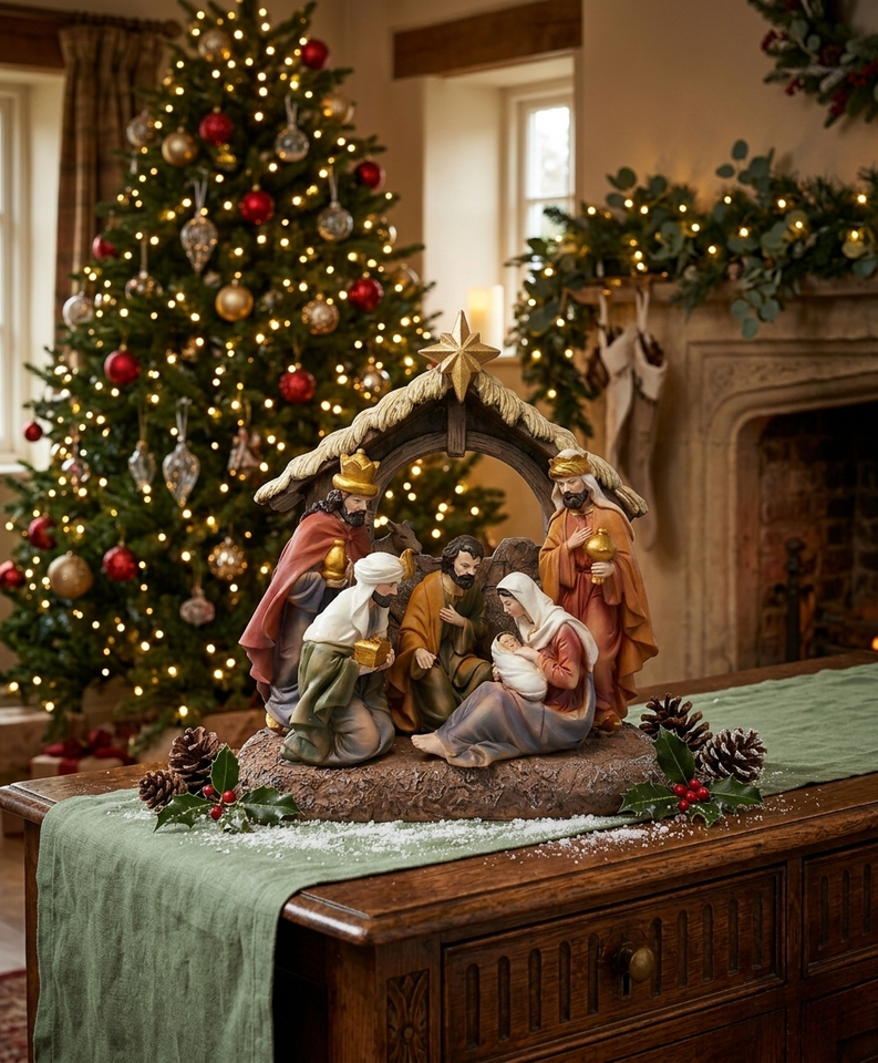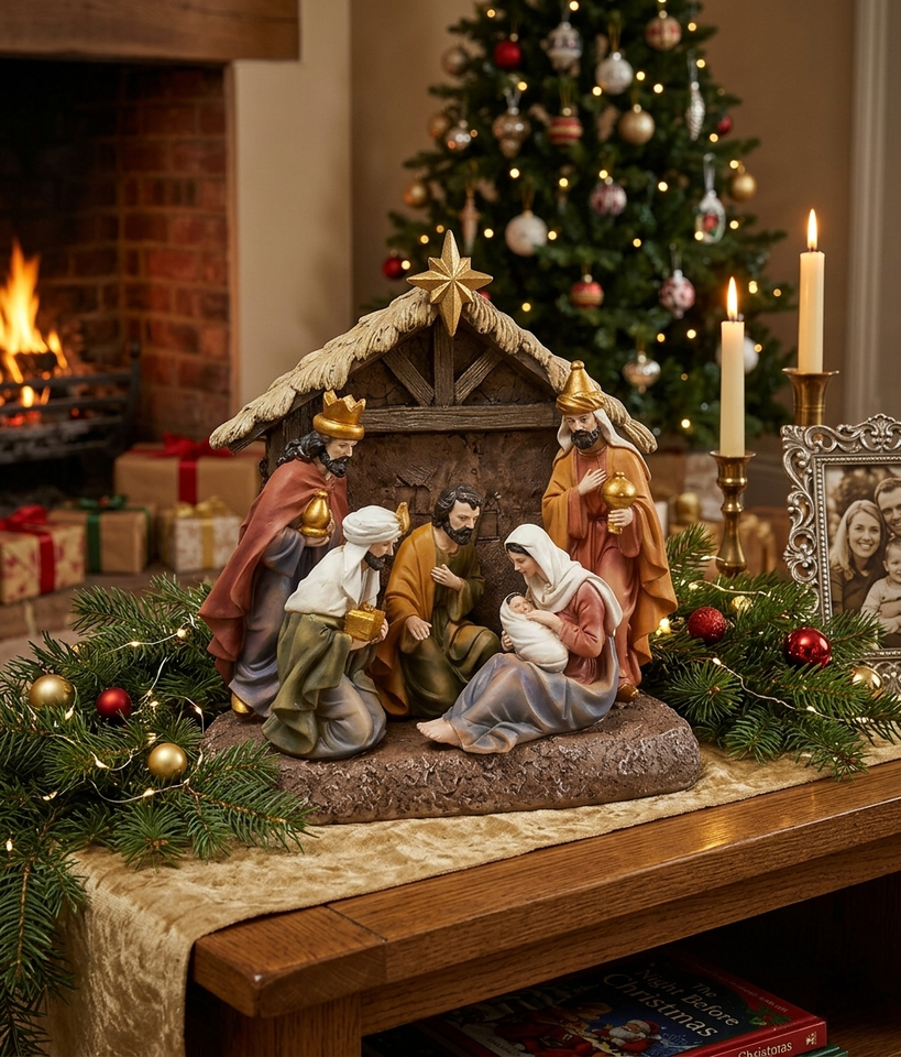 Juego de Nacimiento Navideño de Resina de 8.4 Pulgadas con Estrella Dorada, Figuras de la Sagrada Familia y los Reyes Magos, Decoración Tradicional para el Hogar