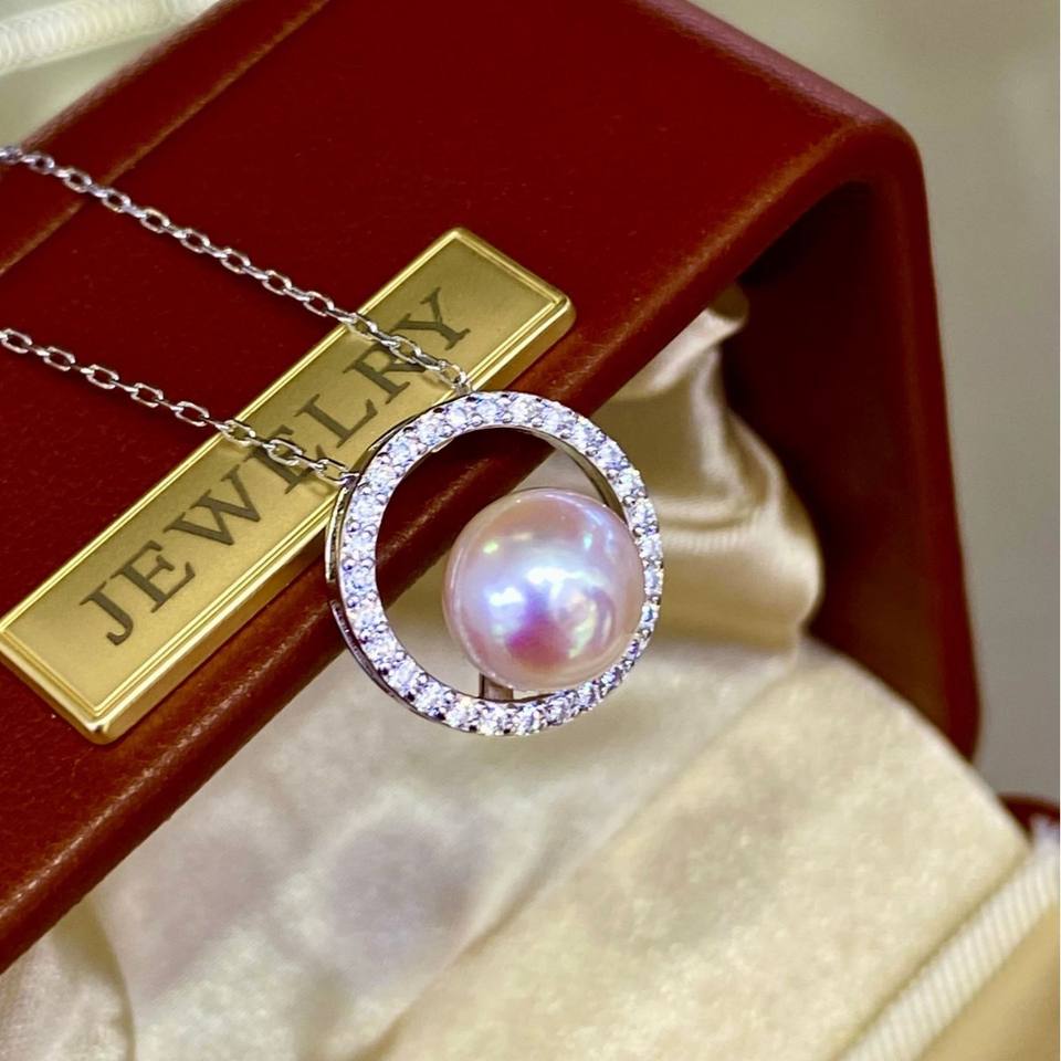Colgante de Perla Natural de Mar Makoya de 8-8.5 mm, Accesorios de Plata Pura S925 con Circonita de Lujo, Circonita Premium de Lujo Ligero, Plata Pura S925