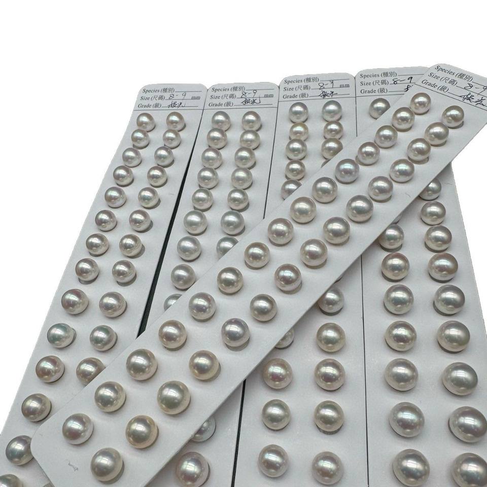 Perlas Sueltas de Akoya de Agua Salada Natural de 8-8.5mm, Perla Desnuda de Zhuji, Blanco Brillante Transparente, Polvo, Luz Intensa, Casi Impecable