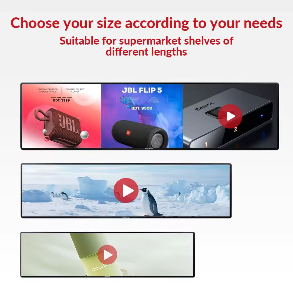 Barra estirada de 8,8-86 pulgadas, pantalla Lcd, señalización Digital, reproductor de publicidad, supermercado, centro comercial, estante inteligente, pantalla de barra Lcd