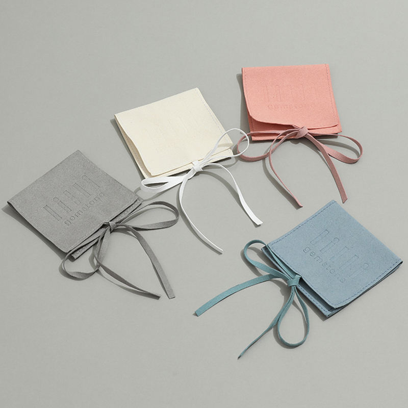 Bolsa de Joyería de Microfibra de Lujo con Logotipo Personalizado de 8*8cm, Bolsa Pequeña con Solapa para Collares y Pendientes, con Lazo