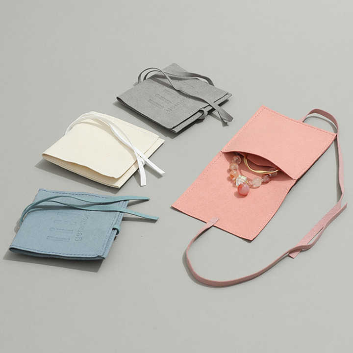 Bolsa de Joyería de Microfibra de Lujo con Logotipo Personalizado de 8*8cm, Bolsa Pequeña con Solapa para Collares y Pendientes, con Lazo
