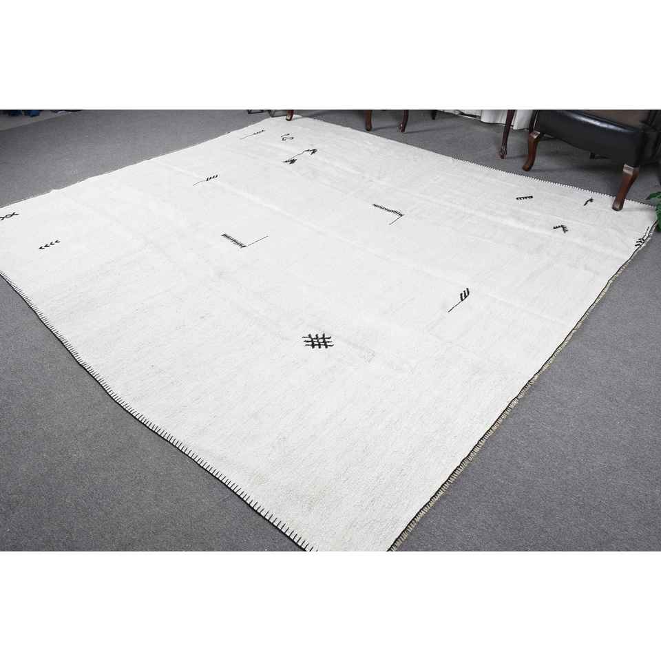 Alfombra de 8.8x9.7 pies, alfombra turca vintage, alfombra de lana blanca y negra con motivos de plantas y árboles