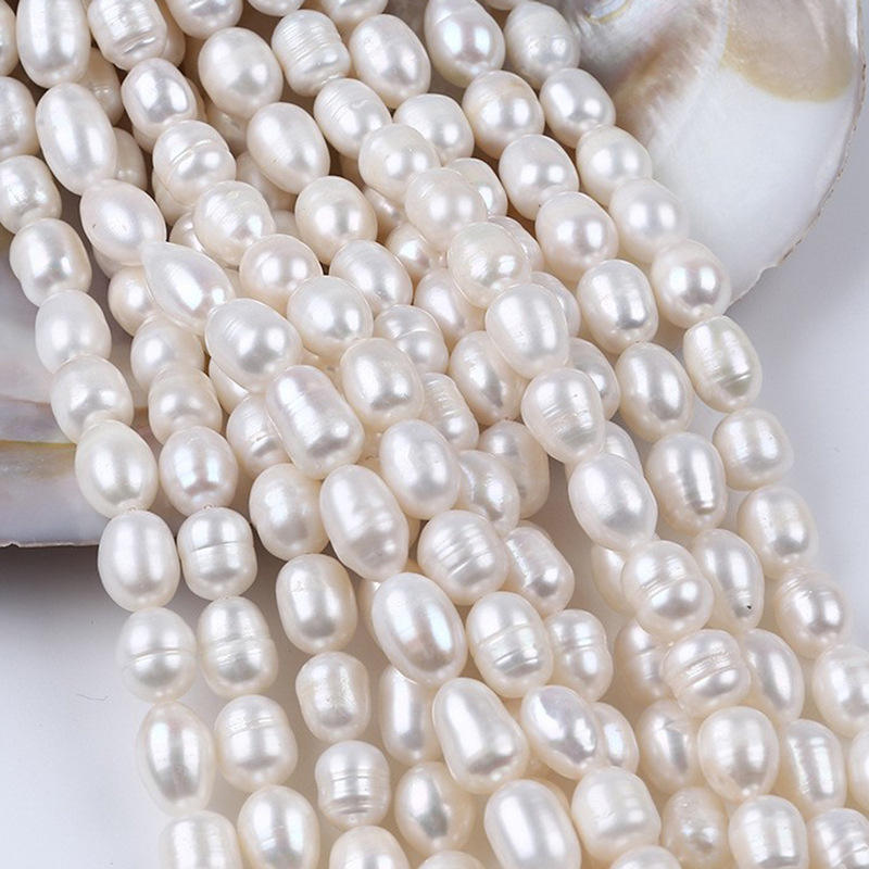Cuentas de Arroz de 8-9 mm, Perlas Naturales de Agua Dulce de Color Blanco y Rosa, Cuentas Sueltas para Hacer Collares y Pulseras
